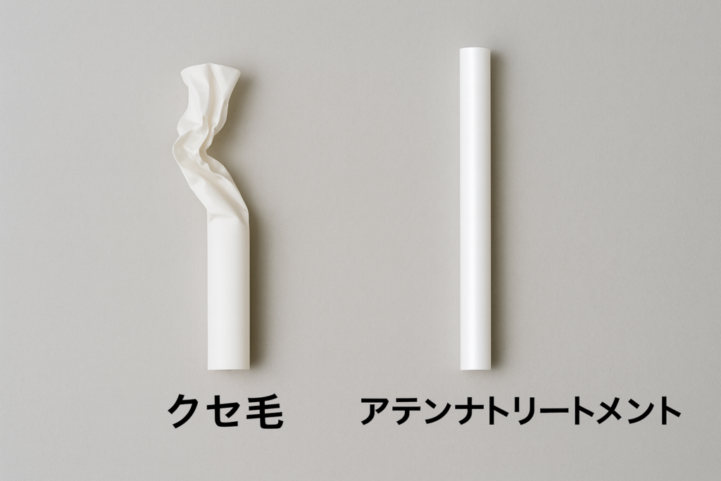 髪を壊すんじゃなくて、中から補強してパンっと膨らませて、癖を内側から整えていきます。