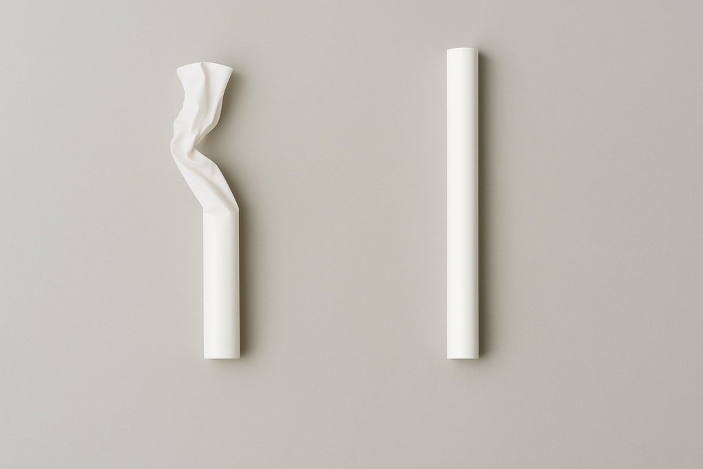 画像のように左側は潰れたストロー(弱くなった髪の毛)。
